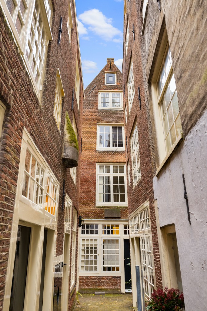 Vanaf de straat is niet te zien dat er achter het laat negentiende-eeuwse grachtenpand aan de Prinsengracht 383 een achttiende-eeuws hofje verborgen ligt. Ze duwen de rechtervoordeur van het grachtenhuis open en lopen door een lage gang met klinkerplaveisel, langs een privaat met een hartvormig gaatje in de deur, tot aan een gesloten hek met dikke spijlen. (2)