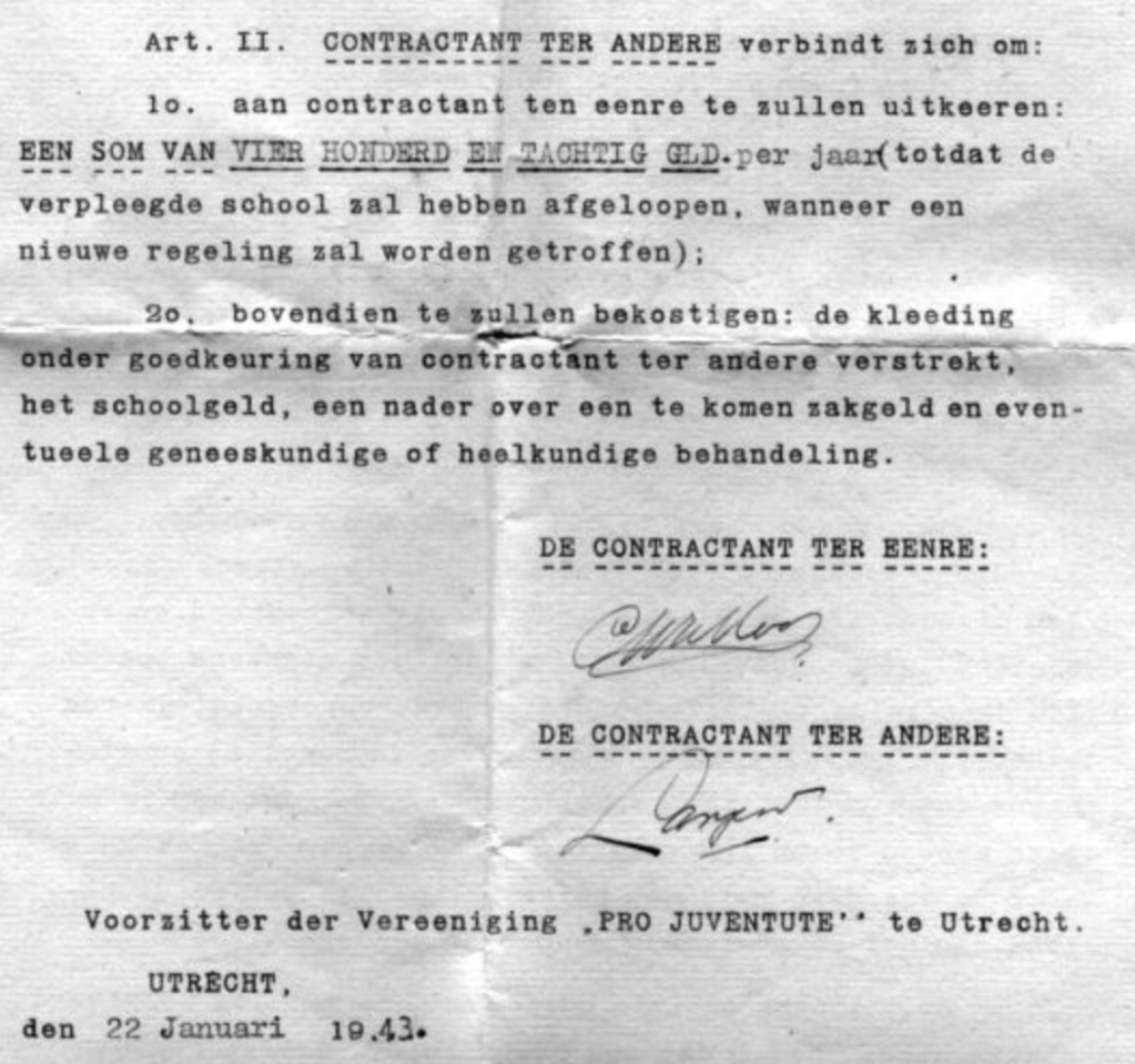 NIOD 534 Hanemann-Kelemen familie. 4. Contract voor uitbesteding van de Rijksvoogdijraad betreffende Catharina Johanna Mulder, 9 augustus 1943.